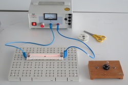 - Die Elektronen fließen im Draht vom -Pol zum +Pol. Dabei stoßen sie an die Atome des Eisendrahtes. Deshalb fangen die Atome des Eisendrahtes an zu "wackeln". Dieses Wackeln bedeutet, dass der Draht immer heißer wird. Sogar so heiß, dass er anfängt Licht auszusenden.