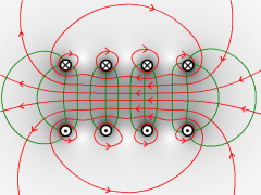 - Um einen elektrischen Strom befindet sich ein magnetisches Wirbelfeld.