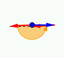 Bei A hingegen ist nun im Zeigerdiagramm der zur rechten Welle gehörige Pfeil länger als derjenige des rechten Lautsprechers. Der Zeiger der Überlagerung verschwindet nicht und man kann nun hier einen leisen Ton hören!