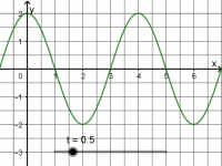 b) Zeichnen Sie die Welle zum Zeitpunkt t=0, also zu Beginn der Zeitrechnung, und 0,5 Sekunden später in ein Koordinatensystem.