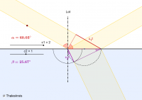 a) Konstruieren Sie den Lichtweg für den Übergang zwischen Wasser und Luft für einen Einfallswinkel von 45°.