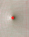 • Das Gravitationsfeld zieht die beiden Sonnen längs der Feldflächen zueinander.