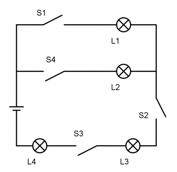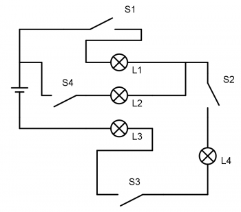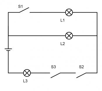 - b) Erstelle eine Tabelle aller Schalterpositionen und Lämpchen wie in Aufgabe 3).