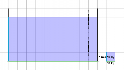[math]p = m\, v = \mathrm{10\, kg \cdot 5\frac{m}{s} = 50\, Hy} [/math] |