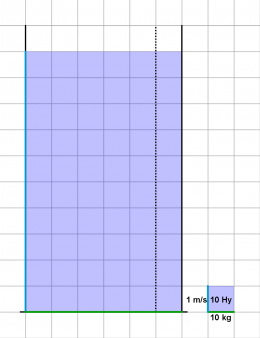 - [math]p = m\, v = \mathrm{0{,}1\, kg \cdot 10\frac{m}{s} = 1\, Hy} [/math]