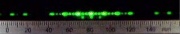 Das nebenstehende Bild zeigt das Bild eines Schirms hinter einem beleuchteten Mehrfachspalt. Der verwendete Laser hat eine Wellenlänge von 532nm und der Abstand zwischen Spalt und Schirm beträgt 1m.