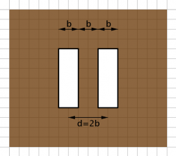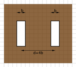 - Die horizontalen Lücken sind nur ca. fünf Hundertstel Millimeter breit. Das Einzelspaltmuster in horizontaler Richtung unterscheidet sich nicht wesentlich von der vertikalen Richtung. Daher sind die vertikalen Lücken genausogroß wie die horizontalen.