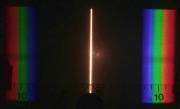 - b) Erklären Sie die regelmäßigen farbigen Stellen innerhalb des Lichtstreifens.