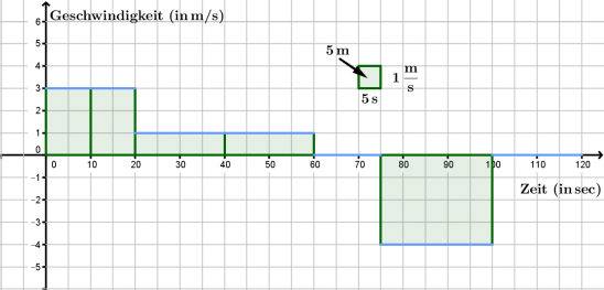 - Von 20s bis 60s: [math]\mathrm{\Delta s = 1\frac{m}{s} \cdot 40\, s = 40\, m }[/math]
