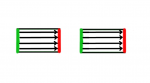 8) Bei diesen Permanentmagneten ist die Ausrichtung der Elementarmagnete durch Magnetisierungs-linien gekennzeichnet. Kennzeichne die Südpole grün und die Nordpole rot.