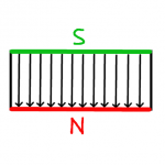 9) Bei diesen Permanentmagneten sind die Pole gekennzeichnet. Zeichne den möglichen Verlauf der Magnetisierungslinien ein.