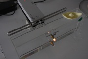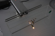 Wir haben einen Sender, der elektromagnetische Wellen im Dezimeterbereich aussendet. In einem dursichtigen Kasten befindet sich eine Lampe mit langer Stabantenne und eine Lampe an einer deutlich kürzeren Stabantenne.