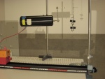 Man versucht nun zu erreichen, dass der Schatten des Wagens (oder des Männchens) sich genauso wie der Schatten des sich drehenden Stiftes bewegt. Zunächst stellt man dazu die Drehgeschwindigkeit des Motors in etwa ein. Die Frequenz des Federpendels ist aber exakter regulierbar, indem man z.B. mit Knete die Masse vergrößert.