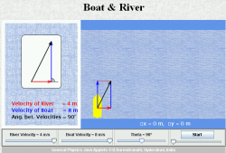 - Applet: Boat Crossing a River (Menü>Kinematics>Boat&River) von B.Surendranath, Hyderabad, India