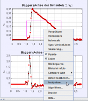 Nachdem der Film "markiert" ist, wird automatisch ein Ortsdiagram (t-x) angezeigt. Man kann die dargestellten Größen verändern und auch mehrere Diagramme untereinander betrachten.