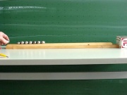 a) Eine Reihe von Stahlkugeln liegt auf einer Bahn. Eine Kugel wird auf die ruhenden Kugeln gerollt.