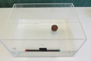 b) Offensichtlich hat die wegrollende Kugel mehr Energie als beim ersten Versuch (a). Das Magnetfeld zwischen der rollenden und der magnetischen Kugel zieht sich zusammen und beschleunigt so die Kugel. Dadurch erhält sie zusätzlich Energie. Aber wo kommt die Energie für die Beschleunigung her?