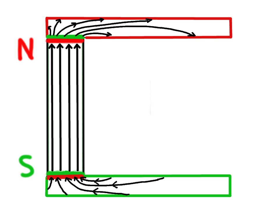 Datei:Lernzirkel Magnetismus Aufgabe Magnetisierungslinien Stabmagnet mit zwei Weicheisen mit Linien.png