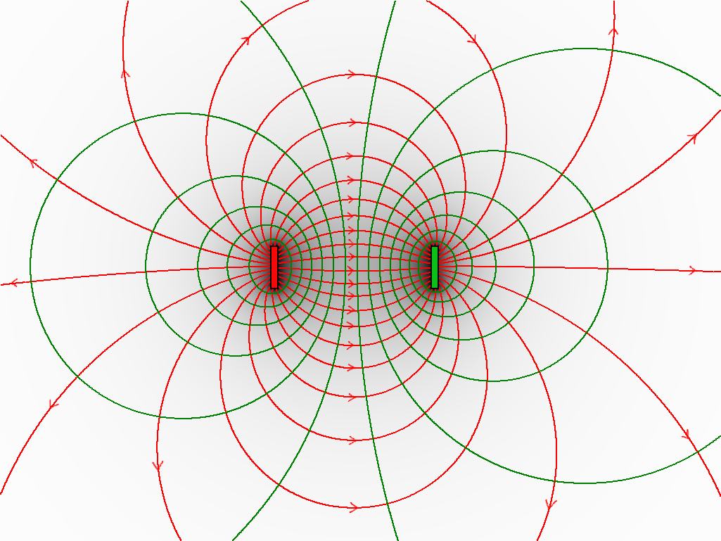 Datei:Magnetfeld Darstellung Stabmagnet sw Linien Flächen Pole.png