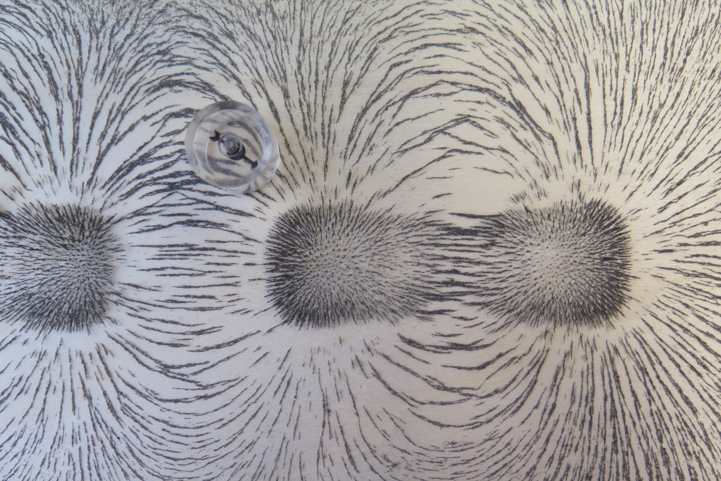 Datei:Magnetfeld Eisenspäne ungleiche Pole Kompass 3.jpg