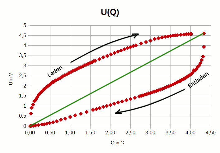 Datei:Praktikum Kondensator Auswertung Laden Entladen U(Q) mit Bemerkungen animiertes gif.gif