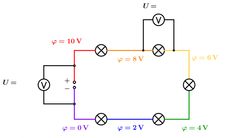 Datei:Spannungsmessung Voltmeter Schaltkreis ohne Voltangaben.png