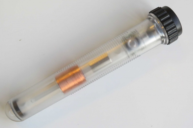 Datei:Taschenlampe Induktion Schütteln Kondensator.jpg