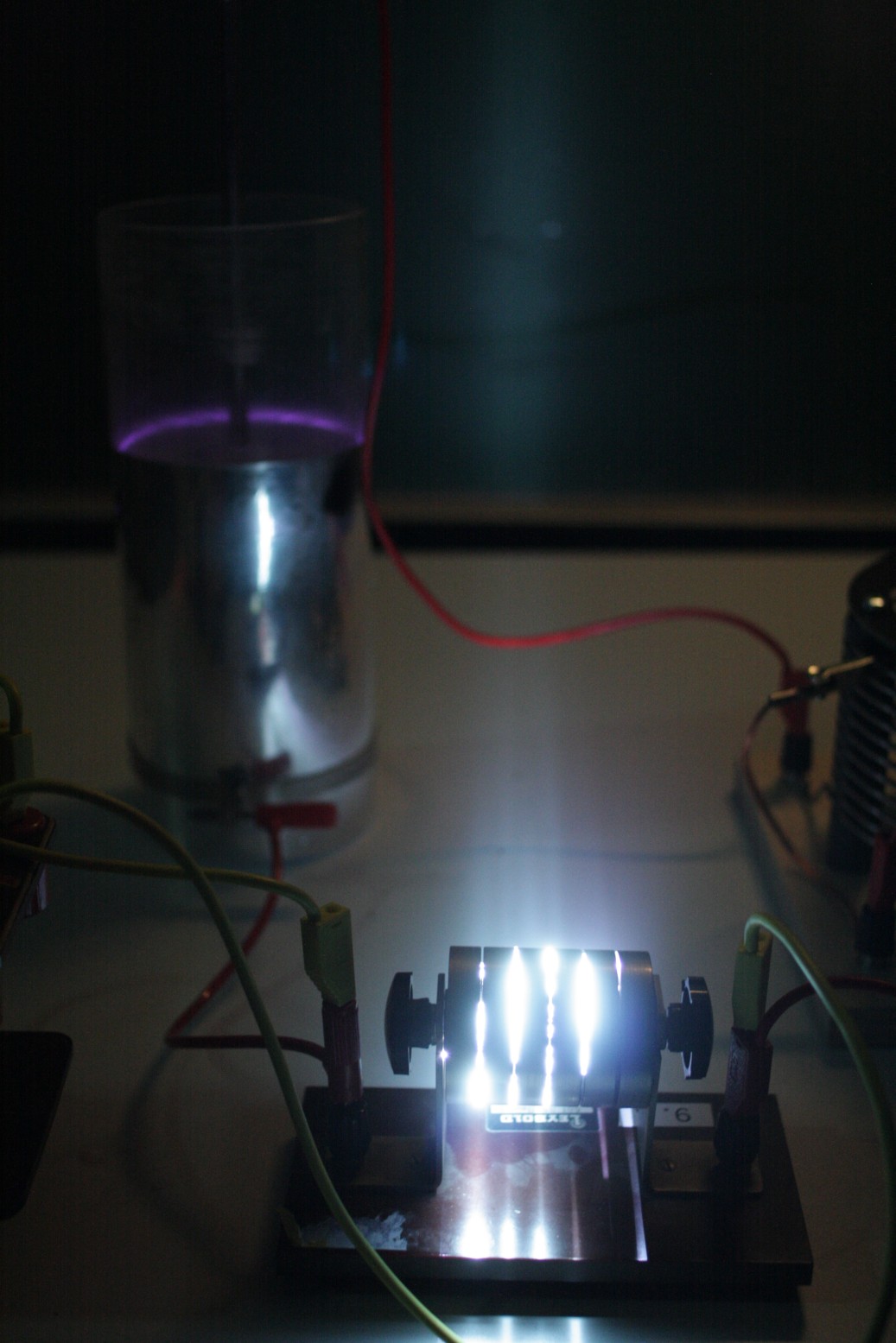 Datei:Tesla Transformator Beobachtung Funkenstrecke Leidener Flasche.jpg