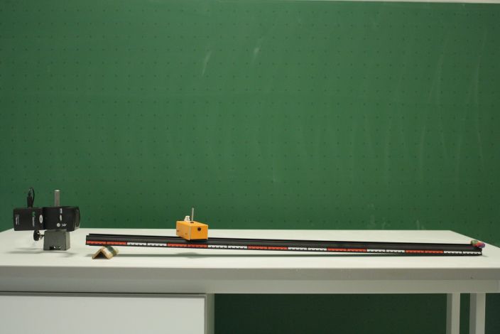 Datei:Versuchsaufbau Wagen rollt bergab Ultraschall.jpg