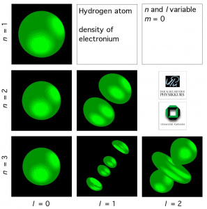 Hier eine dreidimensionale Darstellung der Elektronenhülle bei verschiedenen Zuständen. (Aus dem HydrogenLab der Uni Karlsruhe)