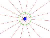 Der Feldstärkefluss geht aus einer geschlossenen Fläche heraus, wenn sie eine positive Ladung enthält und hinein, wenn sie eine negative Ladung enthält. Enthält eine geschlossene Fläche keine Ladung, so ist der mittlere Feldstärkefluss Null.