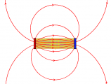 - Polarisierungslinien beginnen bei negativen Polarisierungsladungen und enden bei positiven Polarisierungsladungen.