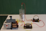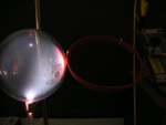 Eine mit Neon gefüllte Glaskugel ist von einer Ringspule umgeben. Man legt eine hochfrequente (ca.10000Hz) Welchselspannung mit etwa 400 V an die Spule und erzeugt so ein sich schnell änderndes torusförmiges magnetisches Wechselfeld.