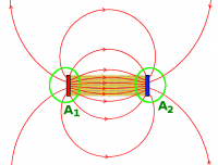 - Dabei ist [math]\bar E [/math] die mittlere Feldstärke senkrecht zur Fläche.