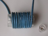 Eine Spule besteht aus einem in Schleifen aufgewickelten Kabel. Häufig wird das Kabel auf einen Kern aus Eisen oder Ferrit gewickelt.