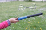 Sobald man zu kurbeln beginnt dreht sich das Segnerrad. Die Rotationsrichtung ist entgegengesetzt der drei Nadelspitzen. Auch in diesem Versuch hält diese Beobachtung nicht viel länger an als gekurbelt wird.
