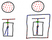 Auch in dieser Konstruktion sammelt sich besonders viel negative positive bzw. negative Ladung in den drei Nadelspitzen an, da dies eine günstige Verteilung bei großen gleichnamigen Ladungen ist (s.o.). Ebenfalls findet eine Ionisierung der Luft in unmittelbarer Nähe der Nadelspitzen statt, wodurch sich wiederum Nadeln und Luft voneinander abstoßen. Der Unterschied hierbei ist jedoch, dass die Nadeln sich dieses mal bewegen können, das Rad wird in eine Drehbewegung entgegen der Nadelenden versetzt (==> Impulserhaltung).