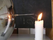 Sobald man beginnt an der Apparatur zur kurbeln bewegt sich die Flamme weg von der Nadel, ähnlich wie bei einem leichten anpusten ebendieser. So schnell dieser Effekt in Kraft tritt, so schnell stellt er sich wieder durch Aufhören der Kurbelbewegung wieder ein.
