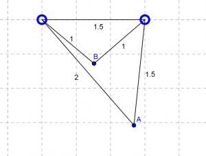 - Bestimmen Sie die Lautstärke an den Punkten A und B mit Hilfe eines Zeigerdiagramms. Vernachlässigen Sie dabei die Abnahme der Schallintensität durch den größeren Abstand vom Lautsprecher und der Dämpfung.