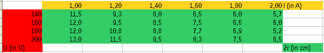 Die Rechnung bestätigt nochmals die Abnahme des Radius mit steigender Stromstärke, bzw. steigender Feldstärke, denn der Radius ist antiproportional zur Feldstärke.