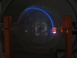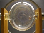 Innerhalb einer Glaskugel wird wie in einem Oszilloskop ein Elektronenstrahl erzeugt. Die Elektronen liefert, aufgrund des glühelektrischen Effekts, eine durch Strom erhitzte Glühwendel. Mit Hilfe einer Beschleunigungsspannung von ca. 150 Volt zwischen Glühwendel und Anode werden die Elektronen beschleunigt. Die Glaskugel ist von Luft evakuiert und mit Wasserstoff unter sehr niedrigem Druck von nur einem Pascal (0,01mbar) gefüllt. Durch den Wasserstoff wird der Elektronenstrahl sichtbar, denn die Elektronen regen beim Zusammenstoß mit den Wasserstoffmolekülen diese an, heben also Elektronen des Moleküls auf ein höheres Energieniveau. Fällt das Molekül-Elektron wieder auf das niedrige Niveau zurück, wird blaues Licht ausgesendet.