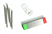 1) Untersucht den zerbrochenen Magneten mit dem Minikompass auf Magnetpole. Wenn der Magnet in mehrere Teile zerbrochen ist, untersucht auch die kleinen Bruchstücke.