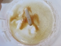 - Das Getränk wird immer weniger und immer fester.