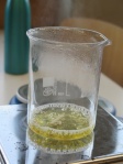 - Dann wiegt man 50g des Getränks in dem Becherglas ab.