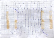 - Mit dem Multimeter die Potentialdifferenz (Spannung) zwischen Minuspol und einer Stelle auf dem Papier messen und Orte gleichen Potentials z.B. 4V auf dem Papier markieren.