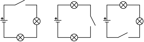 - Links ist der Stromkreis unterbrochen, die Lampe aus. Rechts ist der Stromkreis geschlossen, die Lampe brennt.