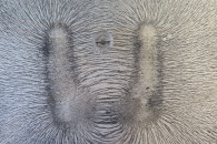 - Durch das Magnetfeld werden die kleinen Eisenspäne magnetisiert. Sie bekommen einen Nord- und einen Südpol und richten sich wie ein kleiner Kompass längs der Feldlinien aus. Weil unterschiedliche Pole vom Feld zusammengezogen werden, bilden sich kleine Ketten längs der Feldlinien.