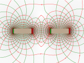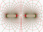 - An den Feldlinien und Feldflächen kann man erkennen, ob das Feld die Pole auseinanderdrückt oder zusammenzieht.