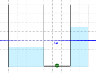 Am Anfang sind sie relativ zueinander in Ruhe, deshalb steht das Wasser in beiden Behältern gleichhoch.