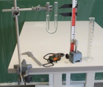 - [math]D\, r = m \, g \quad \Rightarrow \quad r = \frac{m \, g}{D}[/math]